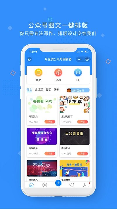 易企微编辑器app是一款图文编辑软件,软件为用户提供最便捷的图文编辑服务,通过软件用户可以很方便的进行各种图片文字的排版,可以满足不同场景下的使用要求,感兴趣的快来下载吧!