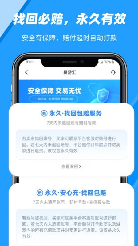 1、找回必赔,永久有效,安全有保障,赔付超时自动打款;