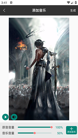2、不仅可以剪辑视频,还可以给视频添加音乐,用户可以选择本地音乐或者在线音乐库中的音乐进行配乐,让视频更加生动有趣。