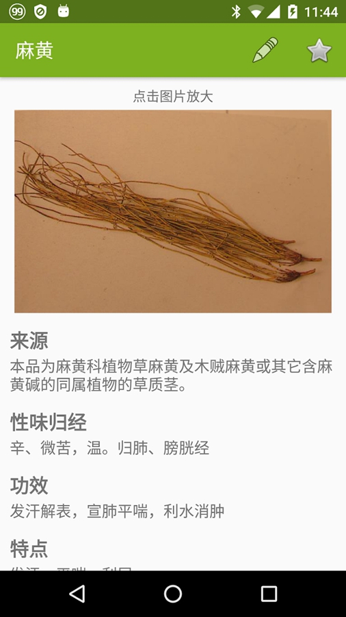 中医系列应用之一。详细介绍了500多味中草药的来源,性味归经,功效,特点,炮制方法,应用配伍,注意事项以及相关的文献资料等,图文并茂。提供快速中药查找。Premium版的用户可以对每味中药做笔记,对感兴趣的中药做标记以便今后快速访问,还可以自己添加中药,具有根据功效、特点或应用的关键词查找的高级查找功能。丰富的专业知识,简单友好的用户界面,是一款便捷实用的中医中药应用软件。