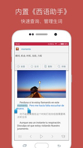 2、划词搜索:与《西班牙语助手》无缝集成,长按查词,即指即译;