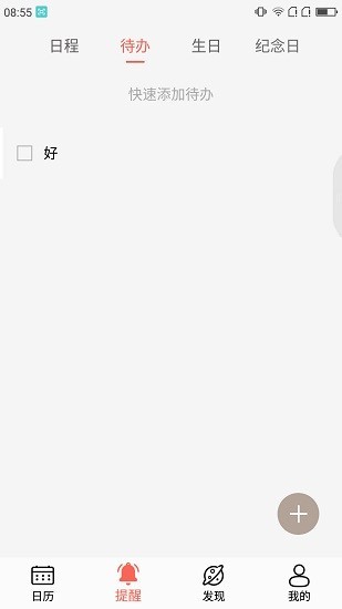 3、事项提醒:可以在这里新建日程、待办、生日提醒、纪念日一个都不能少。