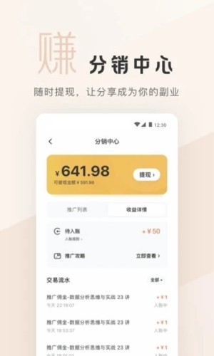 3、一键分享课程链接赚取佣金,迅速赚钱购买课程在线学习;