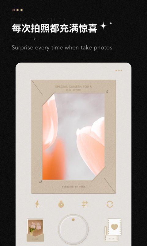正如每款相机都有属于它背后的2265故事,每款Fomz相机主题也会有属于自己的特色与意义,不同的拍摄界面为你每次拍摄带来不一样的心情。