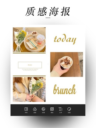 2、强大单图编辑器:对照片的色彩、尺寸、亮度、色调进行精细化调整,加上百种滤镜、几十种字体、文字效果供你选择,让照片更专业有质感。