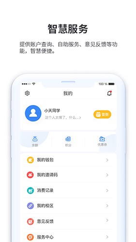 2、智慧生活提供饮水、洗浴、吹风、洗衣、零售、快递、跑腿等校园服务。