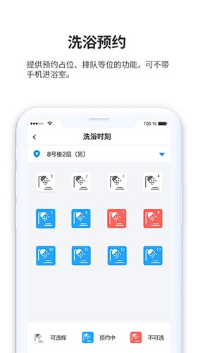 4、洗浴预约提供预约占位、排队等位的功能,可不带手机进浴室。