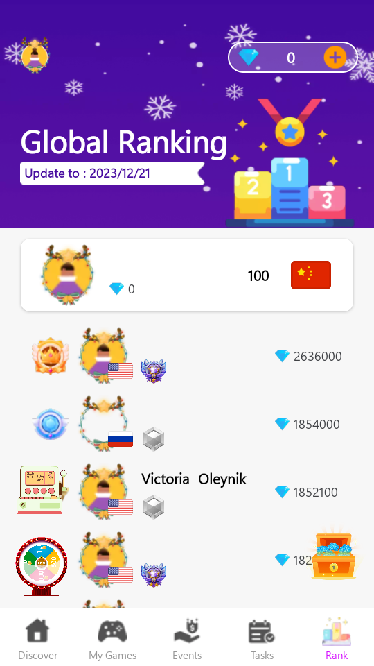 3、根据玩家的宝石数量和等级,Game4Fun有排名系统,玩家可以争夺更高的排名以获得更多宝石。