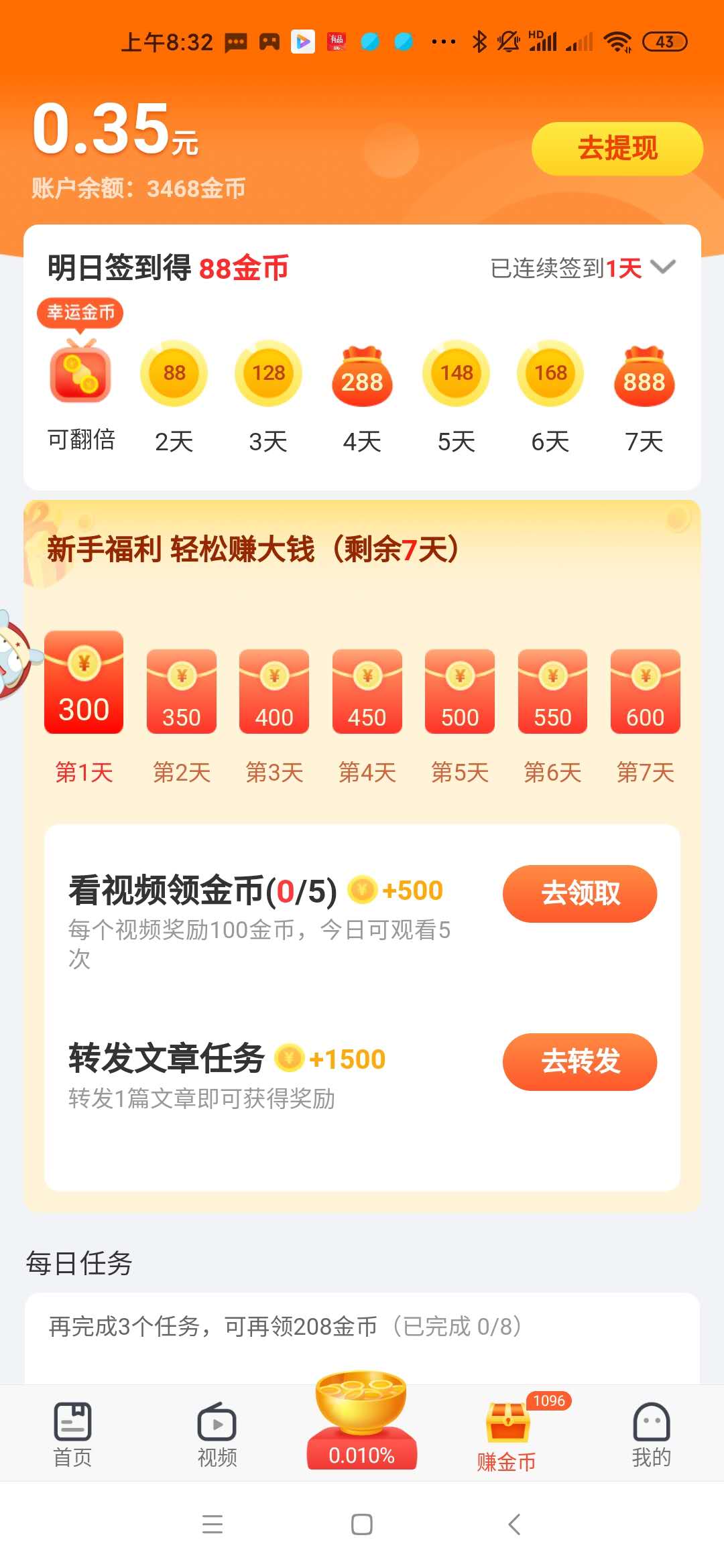 一款福利十足的看新闻赚钱app,在这里可以增长见识,可以获得丰厚的奖励,让新闻咨询也可以产生更大的价值,每天可以赚8块钱。