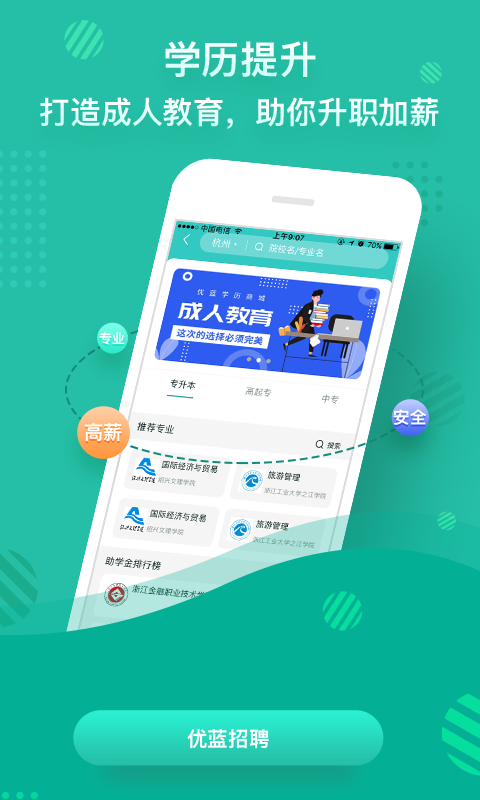 优蓝招聘是一款专门为正在找工作的人们设计的手机招聘软件,拥有海量招聘信息,各种工作岗位应有尽有,分类详细,操作简单便捷,周边名企推荐,官方实名认证,专业求职顾问一对一为你服务,让你在家也可以找到一份好工作,有需要的小伙伴们快来下载试试吧!
