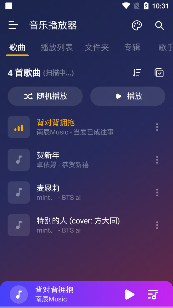 音乐播放器是安卓端最好的音乐播放器,它有优秀的均衡器,支持所有歌曲格式和时尚的界面设计。音乐播放器可以为您提供最好的音乐体验。安卓设备上的所有歌曲都可以浏览,在没有 Wi-Fi 的情况下也能听歌。这么完美的离线音乐播放器,您值得现在就免费拥有。