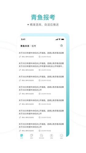 青鱼未来是一款功能丰富强大的公务员考试提分辅助神器,拥有超多丰富专业的资源题库,分类详细,用户可以根据自己的需要和薄弱面进行线上学习,反复练习,方便简洁,能够更好的掌握公考知识点,海量一线专业教师为你一对一辅助,感兴趣的小伙伴们快来下载吧!