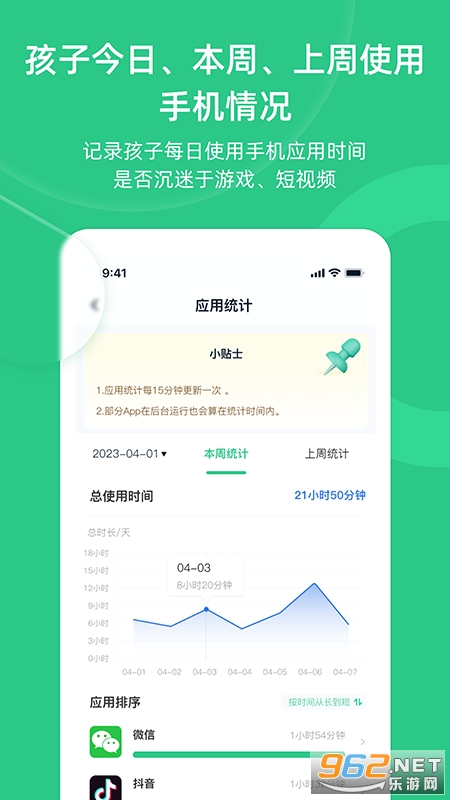 家长可以随时了解掌握孩子任意时间段使用手机使用情况。