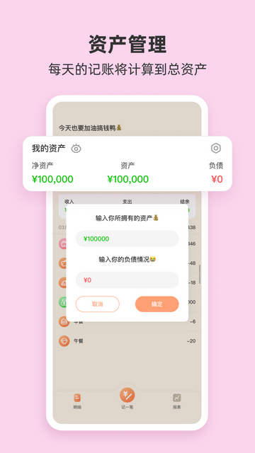 2、「资产账户」资产账户余额汇总,随时随地掌握财务状况。