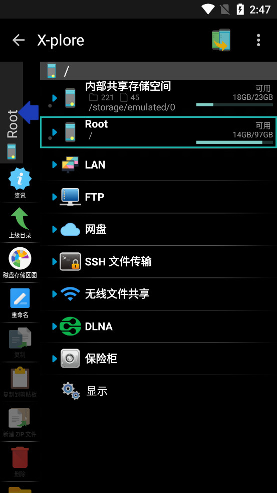 X-plore可以显示局域网内其他计算机上的共享文件夹。