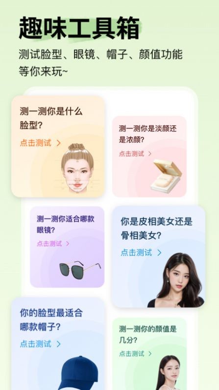 4、趣味工具箱,测试脸型的工具,可以进行研制检测;