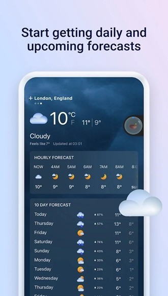 5、准确:以当地时间精准预测全球多个地点今日及未来 10 日的天气。