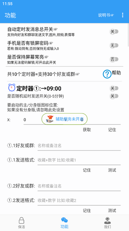 1、功能强大:本软件不仅可以定时发送消息,还可以设置随机延时发送,满足不同场景的沟通需求。