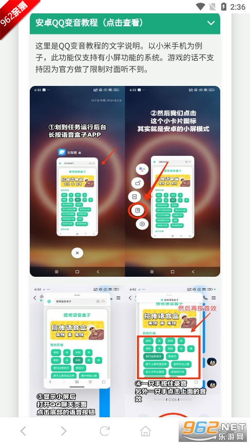 1、音效区域主要是录好的恶搞语音包点击可直接播放,变音区域则是可以将自己说的话转化成恶搞语音分享。