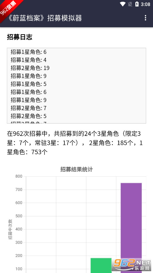 2、系统会根据所招募的次数生成招募日志,并作出详细的招募结果统计图表分析。
