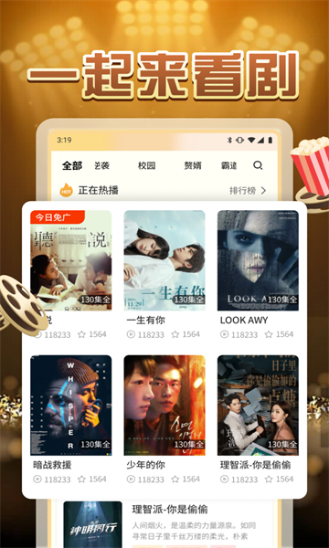 1、当下热播剧推送,一起来看剧吧,还有不同的榜单推荐;