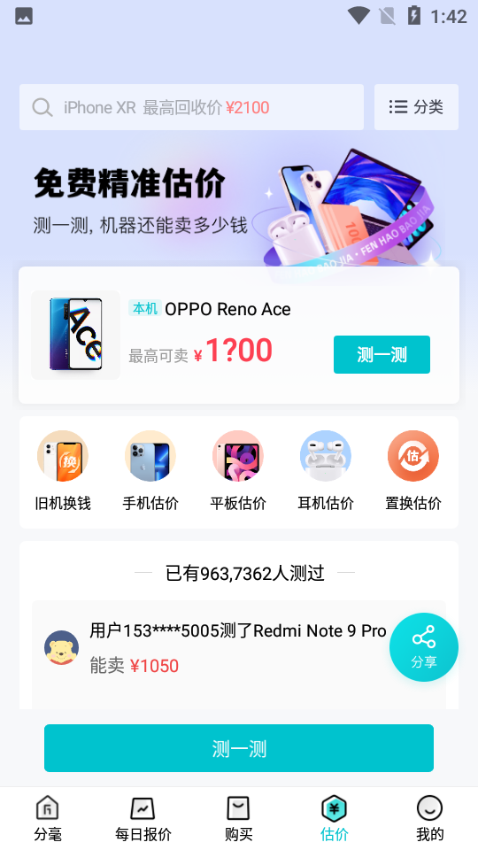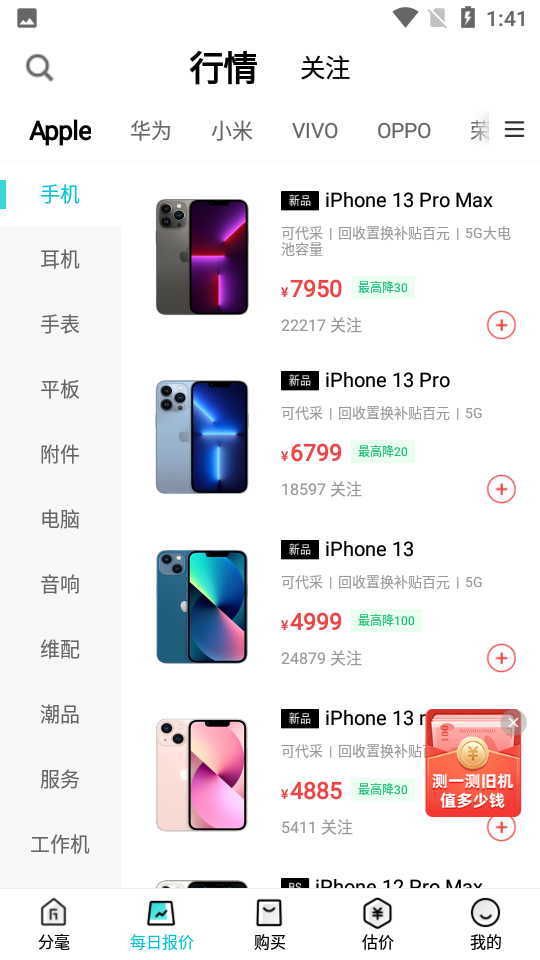 分毫报价又叫千循,是一款二手机交易软件,小伙伴们可以通过该软件查询二手机相关价格,提供以旧换新的服务,平台内所支持的数码电器种类是非常丰富的,所有信息都是全网同步的,让大家可以实时准确了解数码产品价格,有需要的小伙伴们快来下载分毫报价app试试吧!