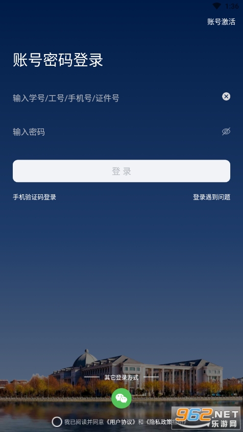 2.打开APP,点击右上角“账号激活”,进入“填写信息”页面。