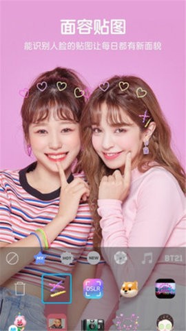 1、动感贴纸:各种有趣动态贴纸,智能识别人脸,帮你一键贴准脸部表情,长按拍照键还可以录制短视频,参与拍照挑战,一键分享朋友圈、,与全球用户一起嗨。