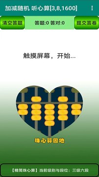 选择听心算会随机出不同难度的加减混合体,练习孩子的心算能力。