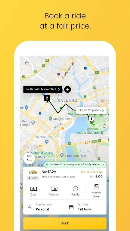 tada打车是一款新加坡打车软件,为广大用户们提供日常出行服务,支持预定出租车、私人轿车等交通工具预定,以及所支持的支付方式也是非常丰富的,您可以在这地图上查看到相应路线、电话沟通、留言等功能一应俱全,有需要的小伙伴们快来下载tada打车试试吧!