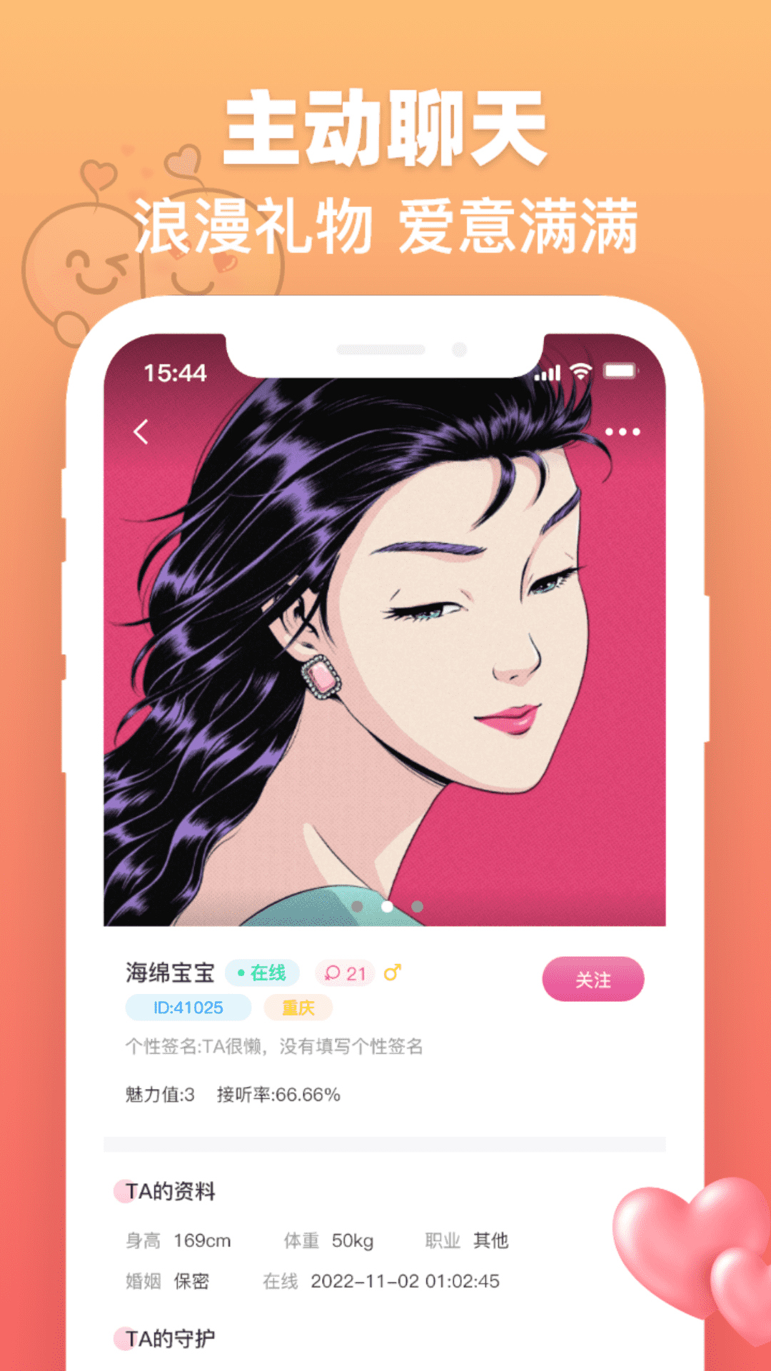 1、支持一对一线上单独互动聊天,更快脱单。