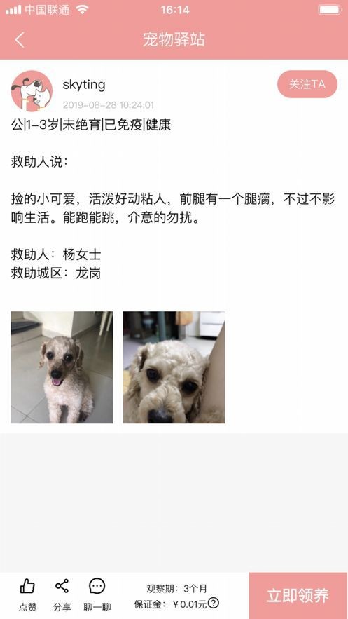 3、领养非常简单。新家庭收养需要缴纳一定押金,观察期结束后退还。