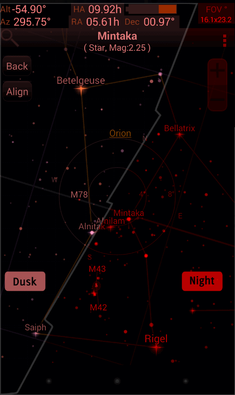 1、自动隐藏所有菜单。当举起设备并指向天空时,进入增强现实跟踪模式。