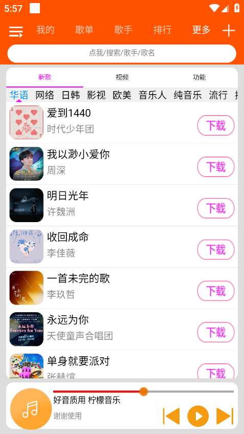 6、丰富的音乐库:柠檬音乐拥有庞大的音乐库,包含各种类型和风格的歌曲,满足用户不同的音乐喜好。