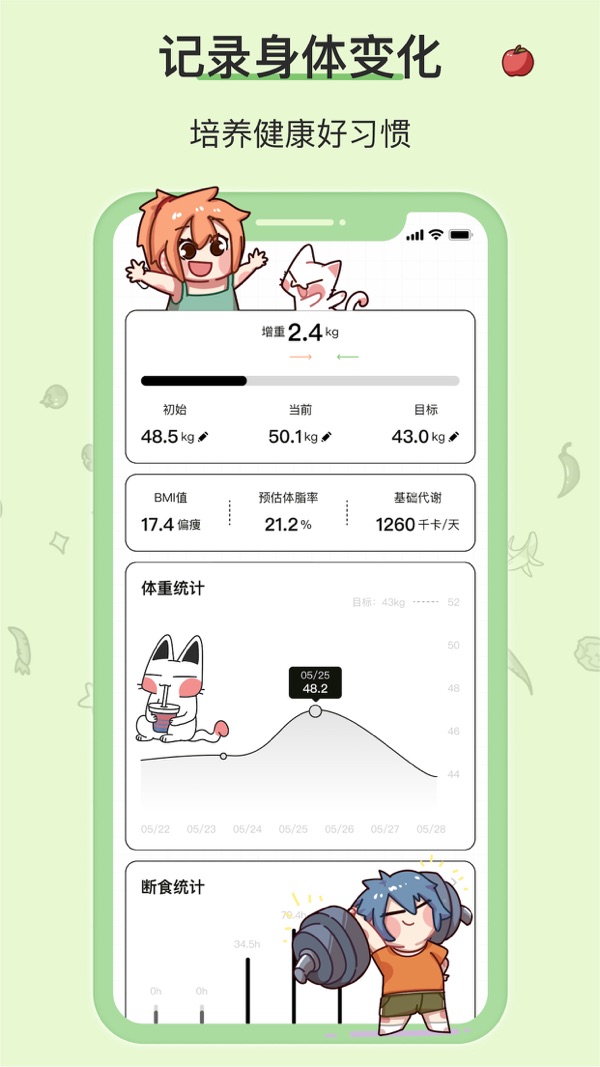 4、体重记录:用户每日记录,形成体重趋势变化,助你养成健康自律的生活方式~