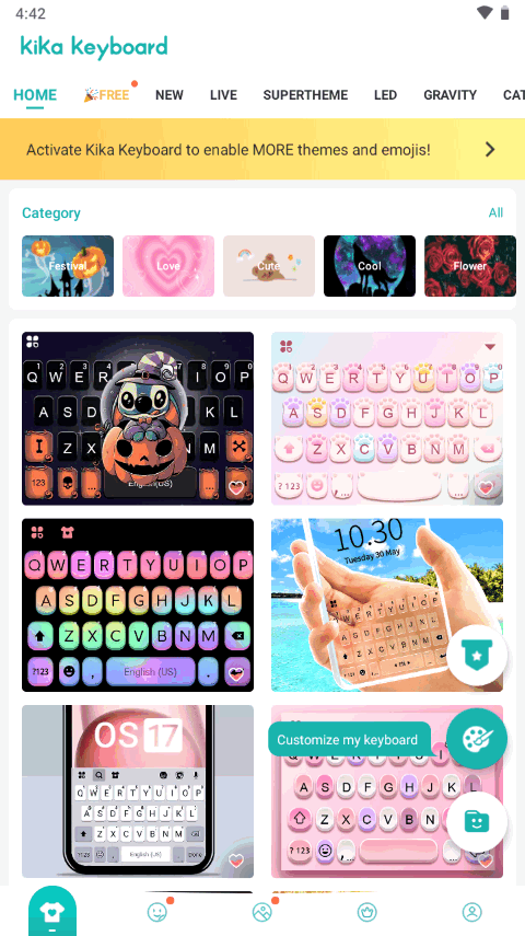4、可以使用10000 +免费键盘主题,以便您可以用梦幻般的背景装饰键盘并获得更多乐趣