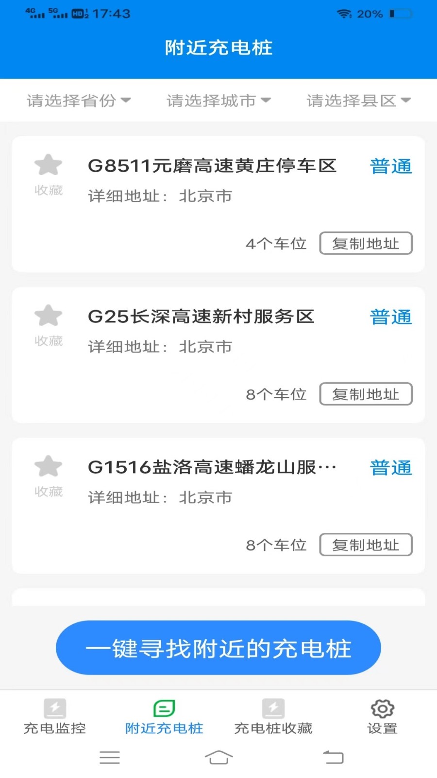 3、精准的位置定位功能,快速获取附近的充电桩信息。