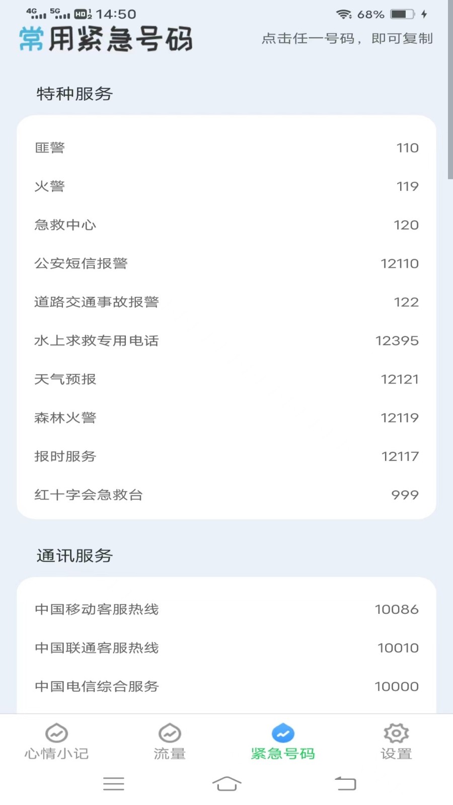 3、功能定位非常综合和全面,可以同时满足心情记录、流量监测和紧急电话号码查询等多重需求。