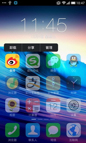 4、提供了诸如图标、背景、便捷栏等各种元素自由调整的方案,每位用户都可以打造出独特的手机桌面风格。