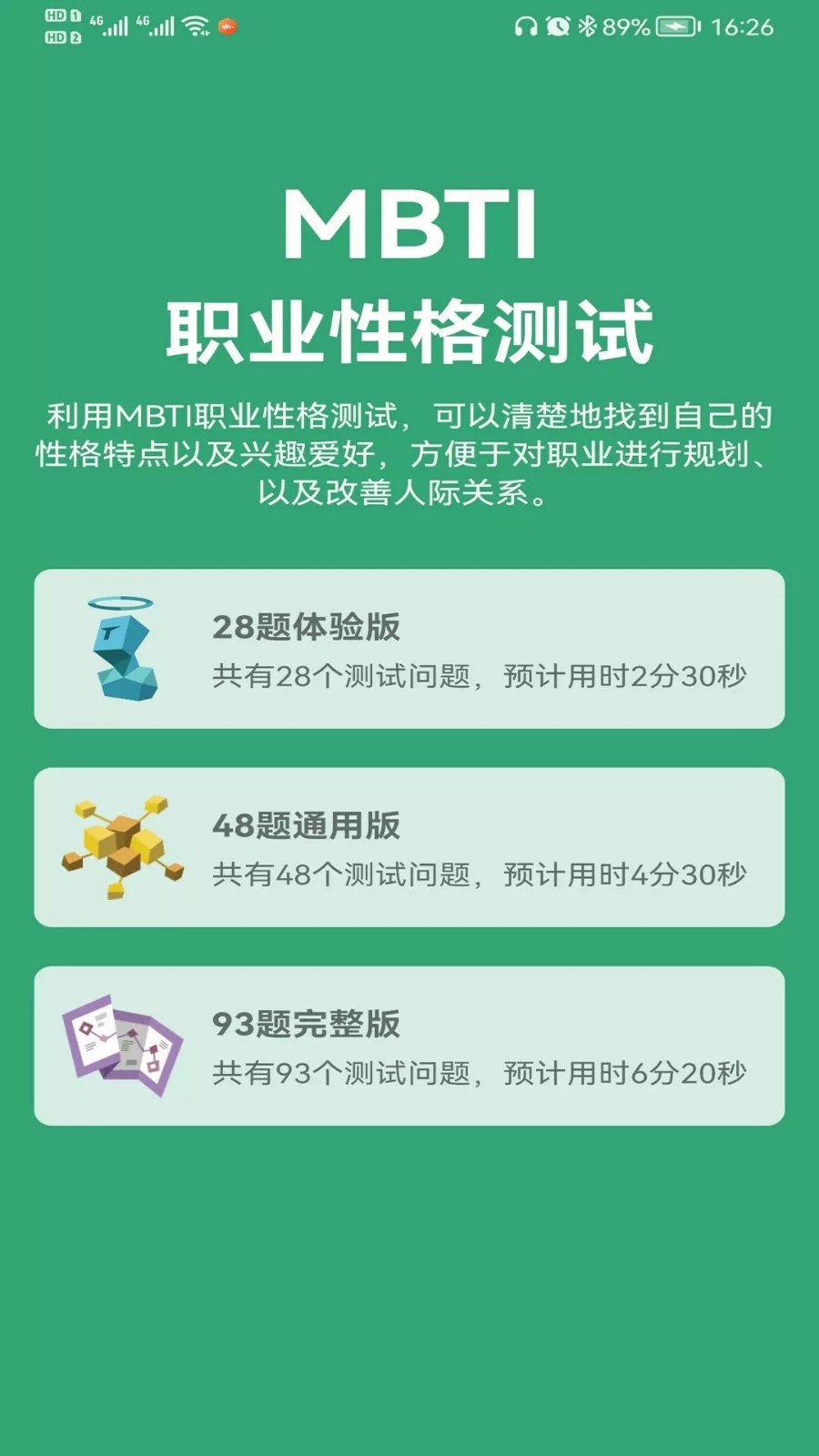 MBTI人格测试是一款非常流行的性格测试软件,软件利用清楚地了解自己的性格优劣势,有利于更好地发挥自己的特长,更好地和他人相处,有需要的朋友快来下载试试看吧。