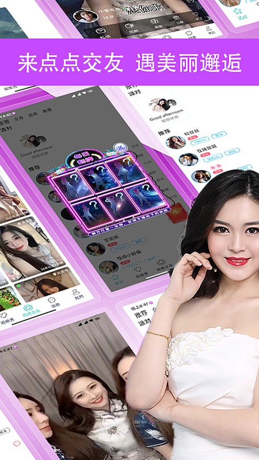 点点交友app是一款非常受大家喜欢的同城在线社交软件,为了方便客户进行约会,特别开发了快速匹配模式,让用户更快捷的找到自己的单身约会对象。还为提供了普通语音和高清视频两种语音聊天方式,用户可以在语音聊天中畅所欲言而且清晰流畅。喜欢的朋友快来下载体验吧!