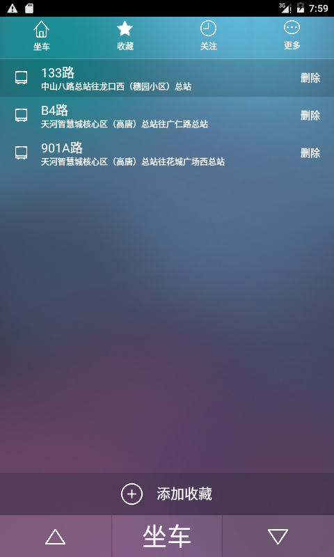 3、便捷管理收藏夹线路,在该页面中能自由添加上班线路或回家线路;