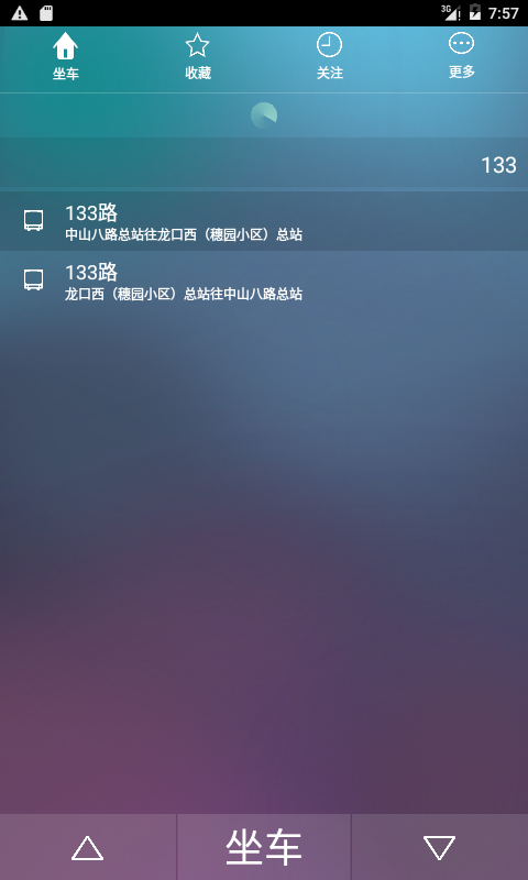 根据自己乘坐车辆信息,个性化收藏线路与开往方向,以后用户在使用时刻直接点击收藏线路进入乘车页面。