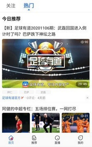 1、进入软件首页即可查看热门推荐的运动赛事报道