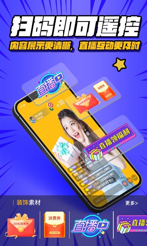 1、【直播间场景】无论您是在户外户内做直播,我们为您提供的多种直播间场景,上千款流行版权素材任你挑选,上手简单,轻松快速更换各种背景,适用于所有场景,为您省时省力。