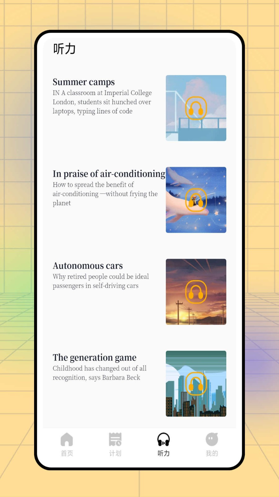 1、每日实景情景剧:用户可观看实景情景剧,模拟日常对话场景,学习实用口语。