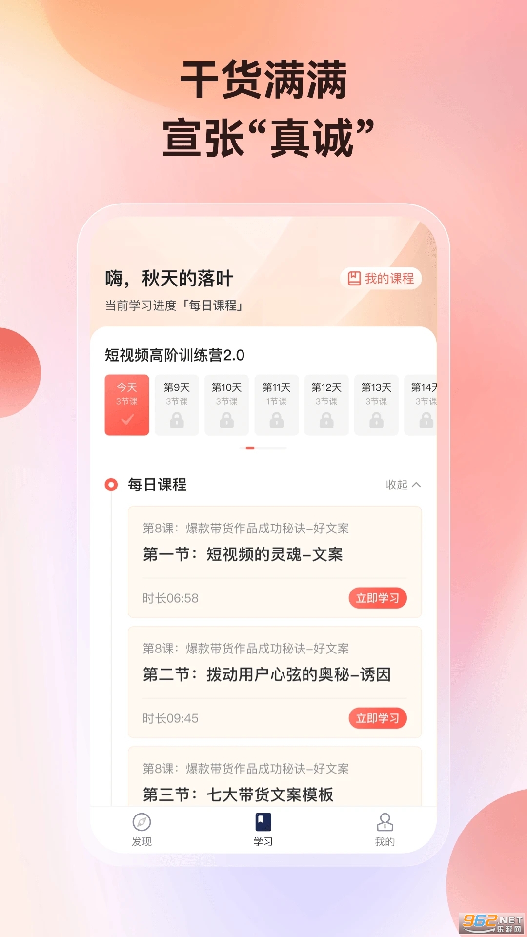 《讲真app》是量子之歌旗下专注于个人价值提升的终身学习平台,汇聚专业团队提供涵盖养生知识、视频剪辑等多领域的学习内容。平台采用直播、录播、社群辅导等多种灵活教学方式,并融入AI技术,帮助用户高效利用碎片化时间掌握实用技能与专业知识。其课程体系注重严谨性和科学性,旨在培养健康的个人习惯和生活方式,助力用户实现全面成长。