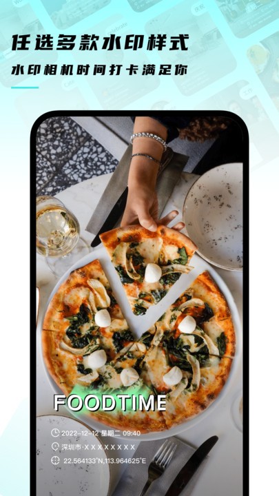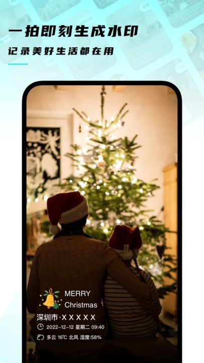 1、一键拍摄,照片自动添加水印,不用再去选择了。