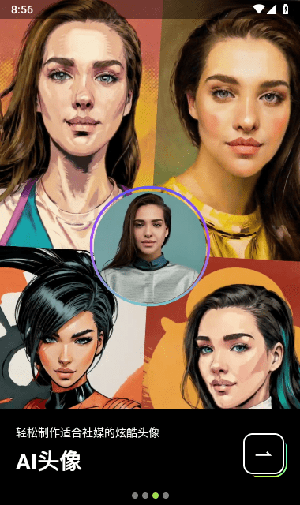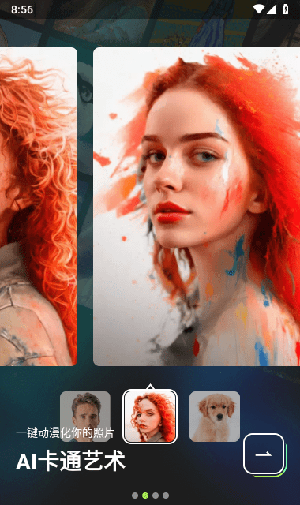 1、您可以使用AI卡通艺术功能,将您的照片变为卡通头像,也可以使用AI绘画功能,