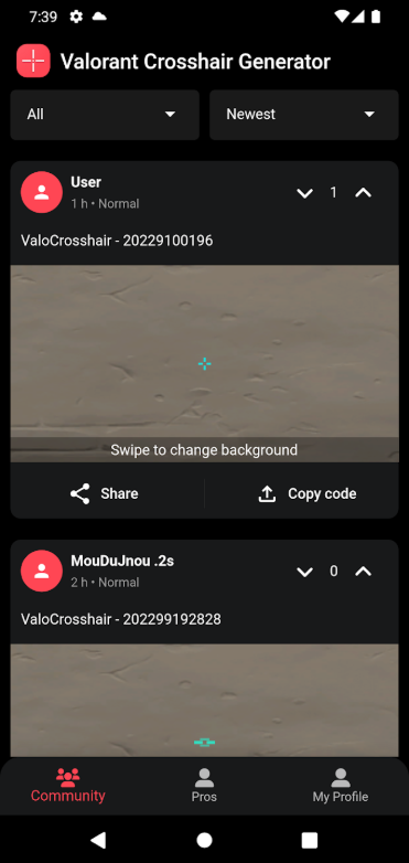 1、复制十字准线导出代码并将其导入 VALORANT。您还可以将代码直接导入应用程序。